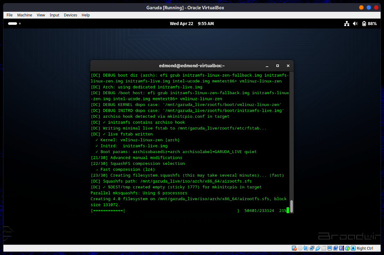 La compressione del filesystem squashfs determina la dimensione della ISO finale e il tempo necessario alla creazione. Scegli in base al bilanciamento velocità / dimensione che preferisci.