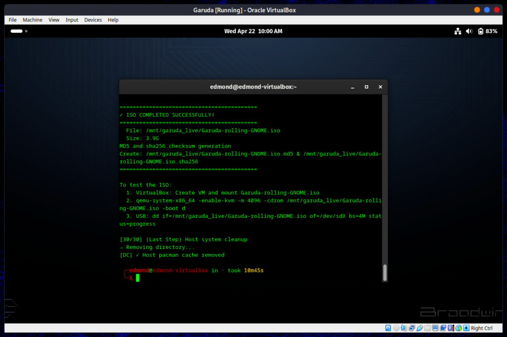 *Output finale nel terminale: percorso ISO, dimensione file, checksum MD5 e SHA256 per verifica integrità.*